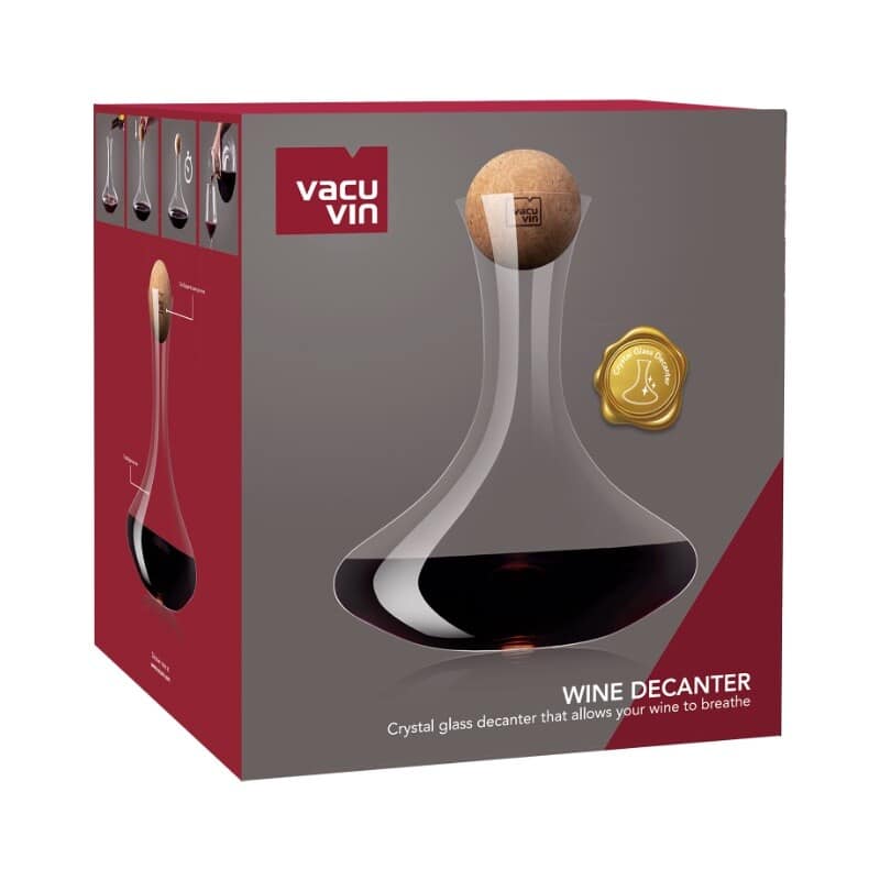 | Commentaires | Vacu Vin est l’inventeur de l’original Wine Saver en 1986. Avec sa passion du vin, il s’est depuis spécialisé dans les accessoires autour du vin. Carafe de grande qualité destinée à l’aération et au service des vins jeunes. Grâce à sa forme large, une plus grande surface du vin est en contact avec l’air. Si vous souhaitez une aération supplémentaire, verser le vin énergiquement dans la carafe. Pour les vieux vins, nous vous recommandons d’utiliser une carafe avec une forme fine pour qu’une plus petite surface du vin soit en contact avec l’air. L’idée étant plus de transvaser le vin dans un autre contenant afin de séparer les sédiments du vin (décantation) plutôt que de l’aérer. |